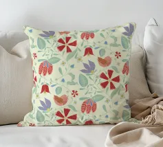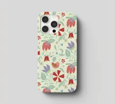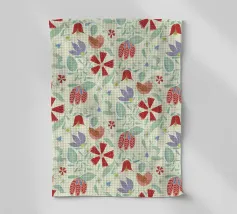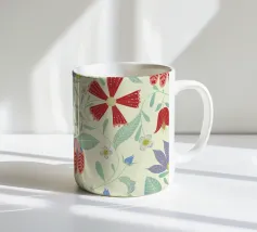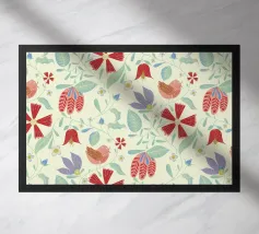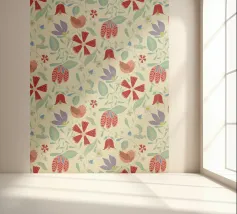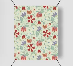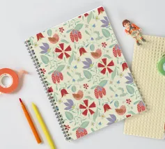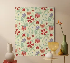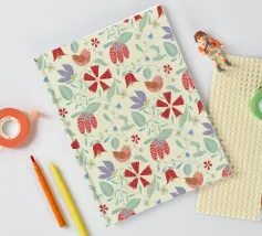 Questo disegno vi trasporta in un mondo allegro e intricato di fiori e uccelli, pieno di colori e di leggerezza. Numerosi fiori stilizzati e foglie delicate in tonalità vivaci danzano sullo sfondo e trasmettono una sensazione di umore estivo, gioia di vivere e bellezza spensierata.