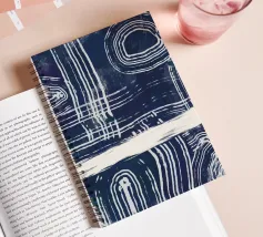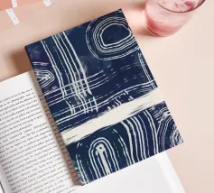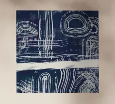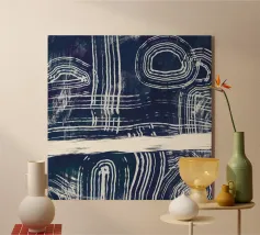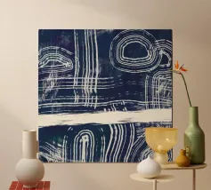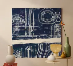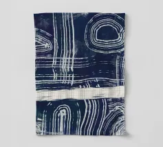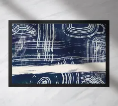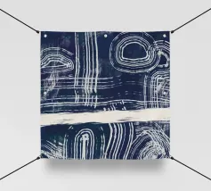 Linee astratte bianche si curvano e si intersecano su uno sfondo scuro e strutturato, creando un motivo intricato che attira lo sguardo. Forme circolari e lineari si intrecciano, suggerendo un senso di movimento e profondità.