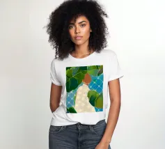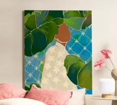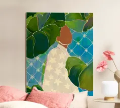 Stato d'animo tropicale foglie di banano foresta giungla pittura gouache donna persone piastrelle natura botanica moda ritratto posa