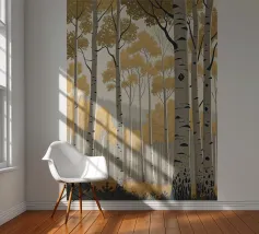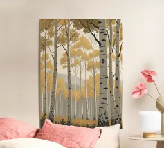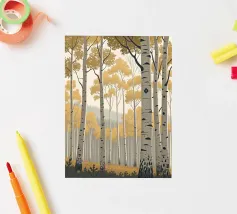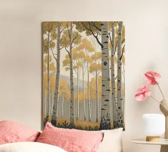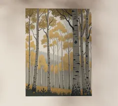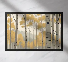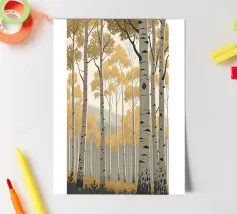 Perdetevi nella tranquilla bellezza di un boschetto di pioppi dorati con questa accattivante stampa d'arte digitale. L'opera d'arte raffigura una fitta foresta di imponenti alberi di pioppo, con la loro caratteristica corteccia bianca punteggiata di nero, su uno sfondo morbido e nebbioso. Le foglie sono di un vibrante e caldo oro, creando un sorprendente contrasto con il cielo pallido e le tonalità più profonde del sottobosco. Questo pezzo evoca un senso di pace e tranquillità, perfetto per portare un tocco di maestosità della natura e un'estetica moderna in qualsiasi stanza. Le linee pulite e la tavolozza di colori rilassanti lo rendono un'aggiunta versatile a una vasta gamma di ambienti.