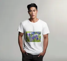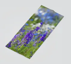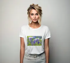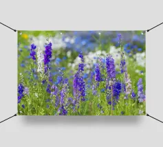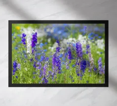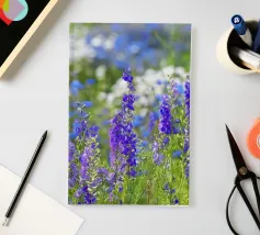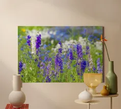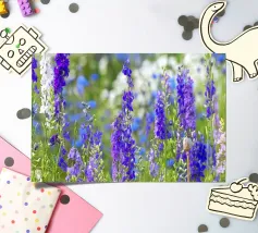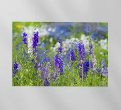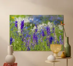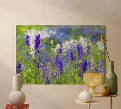 Immergetevi nella bellezza mozzafiato di un campo pieno di delphinium viola, uno straordinario spettacolo di eleganza e tranquillità della natura. Questa fotografia cattura le alte e graziose fioriture che ondeggiano dolcemente nella brezza, con le loro vibranti tonalità viola che creano una scena di pura serenità e fascino. I delphinium simboleggiano positività, dignità e protezione.