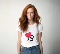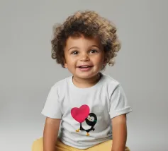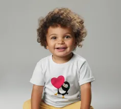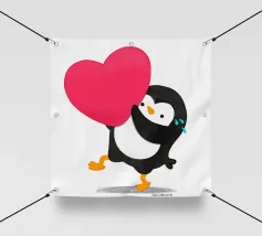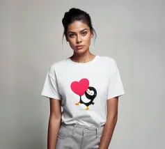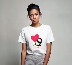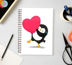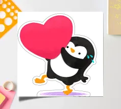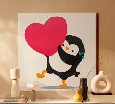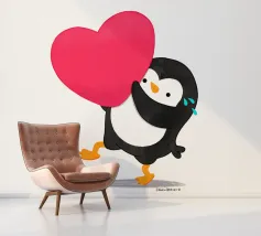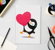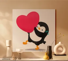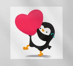 Simpatico disegno di un piccolo pinguino che porta con sé un grande cuore