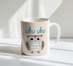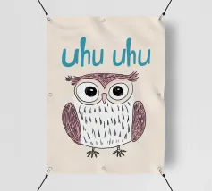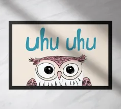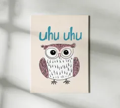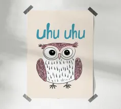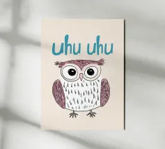 Questa illustrazione minimalista di un gufo con l'allegro testo "Uhu Uhu" porta gioia giocosa nella stanza di ogni bambino e celebra la bellezza della natura.