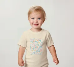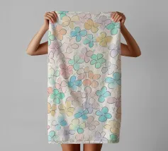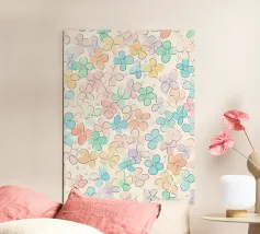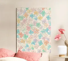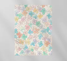 Questa simpatica illustrazione floreale in tenui colori pastello presenta fiori delicati in un motivo infinito. Con il suo design romantico e primaverile, dona una decorazione dolce e un'arte creativa a qualsiasi stanza, ideale per i bambini e gli amanti dei fiori.