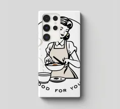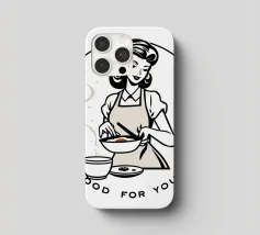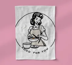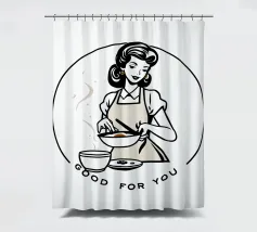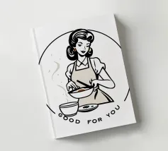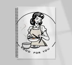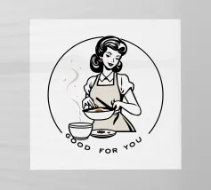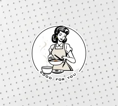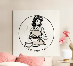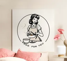 Una donna con il grembiule mescola gli ingredienti in una ciotola, irradiando calore e gioia in un'accogliente cucina, sottolineando la gioia dei pasti fatti in casa.