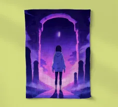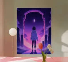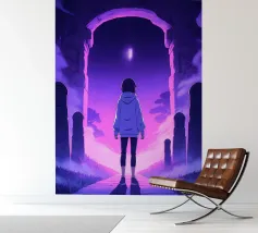 Una ragazza in piedi in un luogo infestato di notte Lofi Art