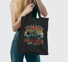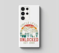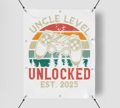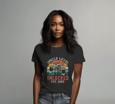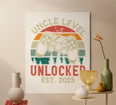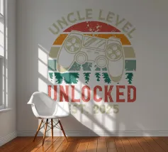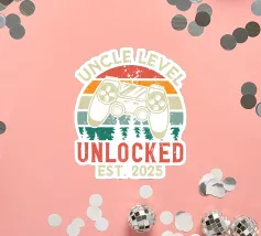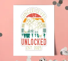 La grafica di un controller di gioco in stile retrò è caratterizzata dalla scritta "Uncle Level Unlocked" sopra e "Est. 2025" sotto. Il design combina un'estetica vintage con un tocco giocoso sulla cultura del gioco.