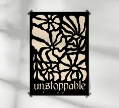Se siete inarrestabili quando inseguite i vostri sogni e le vostre ambizioni, questo è il design giusto per voi. Fiori leggeri astratti con tipografia. Poiché questo disegno è disponibile in quattro varianti di colore, può essere combinato in un set di 2, 3 o 4 colori.