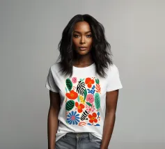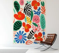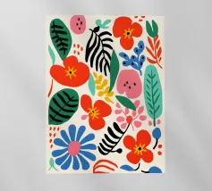 Un design vivace, ricco di fiori e foglie colorate, che unisce natura e creatività. I colori vivaci del rosso, del blu, del verde e del giallo creano un'atmosfera allegra e dinamica. Ideale per murales, tazze, cover per cellulari o cuscini, questo motivo floreale dona stile e freschezza a qualsiasi ambiente e cattura l'attenzione degli amanti del design. Perfetto per chi apprezza i motivi artistici e moderni della natura.