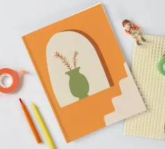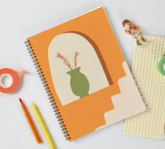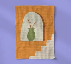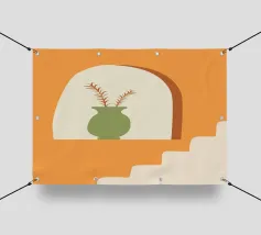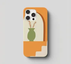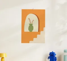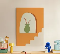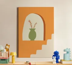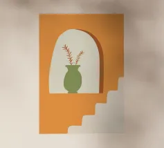 vaso minimo foglie piante interno arco scale verde astratto geometrico arancione piatto semplice moderno arredamento ombra ritaglio casa parete sagoma