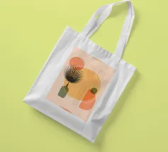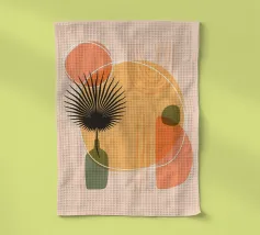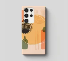 foglia di palma vaso forme geometriche cerchio cerchio arancione forma verde forme organiche pianta astratta composizione elementi minimalisti modelli di linee forme sovrapposte contrasto di colore spazio negativo silhouette di piante forme semplici toni della terra elemento decorativo design moderno motivo di sfondo