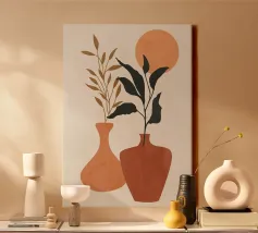 vaso foglie piante sole ombre ramo terracotta fogliame botanico silhouette minimalista texture curva rotonda gambo organico terroso natura cielo luce