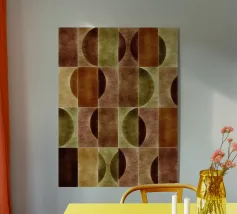 Un design accattivante che porta una miscela unica di toni della terra e motivi geometrici nei vostri interni. Perfetto per chi cerca un'estetica moderna ma calda, il gioco di forme nelle ricche tonalità del marrone e del verde crea un effetto visivo di grande impatto.