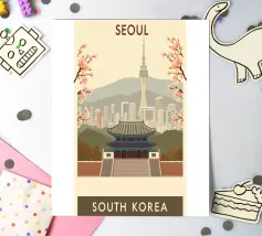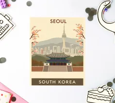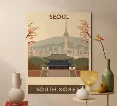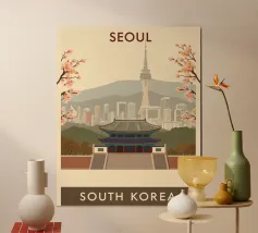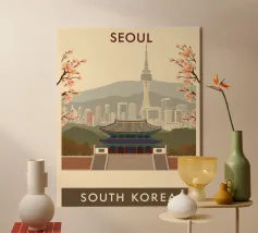 Un poster di viaggio senza tempo ispirato al fascino di Seoul, che cattura scenari iconici in uno stile retrò vintage. Con una miscela armoniosa di colori e composizioni, quest'opera d'arte porta vibrazioni nostalgiche e voglia di viaggiare sulle vostre pareti - perfetta per i viaggiatori, gli amanti del design o chiunque sogni Seul.
