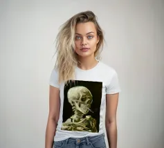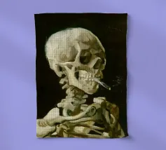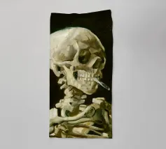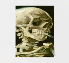 Uno studio di Vincent van Gogh dall'umorismo cupo e audace, che mostra uno scheletro con la sigaretta accesa Dipinto durante il periodo trascorso all'Accademia Reale di Belle Arti di Anversa: un esercizio accademico satirico e un commento ribelle. Combina anatomia e arguzia con le inconfondibili pennellate e ombreggiature di van Gogh Un'opera molto amata dagli amanti dell'arte alternativa, dei temi macabri e del simbolismo filosofico. Un pezzo d'arredamento di grande effetto per interni moderni, studi o spazi con un'impronta gotica o non convenzionale
