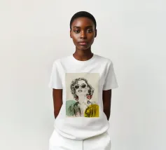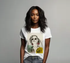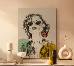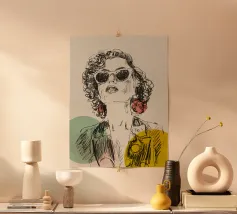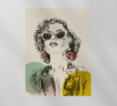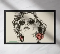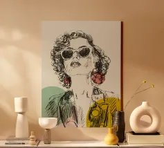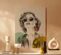 Audace ed elegante senza sforzo, questa illustrazione di moda di ispirazione rétro presenta una donna sicura di sé con capelli ricci, occhiali da sole oversize e orecchini rossi di grande effetto. Creata con linee di schizzo espressive e accenti di colore moderno in verde menta, giallo caldo e rosa, l'opera d'arte fonde il glamour vintage con il minimalismo contemporaneo. Perfetto per gli amanti della moda, per i collezionisti d'arte o per chiunque sia alla ricerca di un pezzo forte per la propria casa o il proprio studio.
