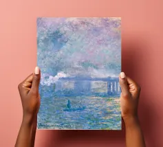 Ponte di Charing Cross blu porpora, ponte nebbioso romantico Stampa