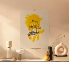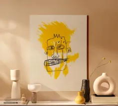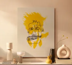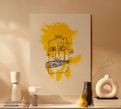 Questa splendida opera d'arte in giallo brillante cattura l'energia grezza e senza fronzoli dell'arte moderna. Con una miscela di linee astratte, tratti del viso distorti e colori espressivi, crea un effetto unico pieno di emozioni e movimento. I tratti semplici ma potenti conferiscono al dipinto una spontaneità profonda, quasi infantile, che cattura l'osservatore. Perfetto per gli amanti dell'arte che apprezzano le opere dinamiche e non convenzionali e desiderano aggiungere un tocco d'avanguardia alla propria stanza.