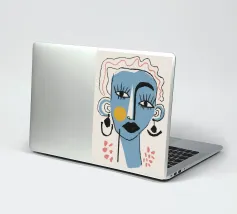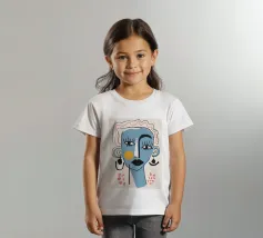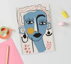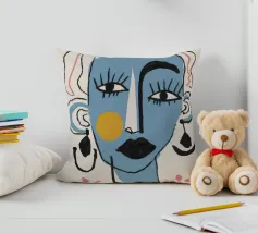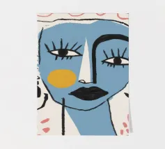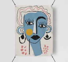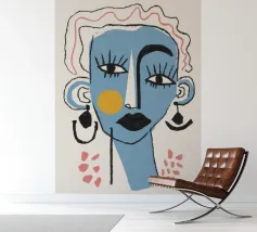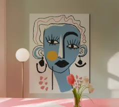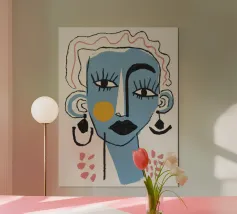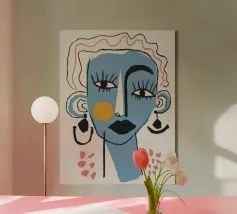 Un ritratto astratto, alla Picasso, di un volto reso in tonalità di blu con tratti estrosi e continui, che evoca un senso di creatività, sogno e arte moderna.
