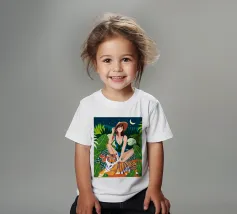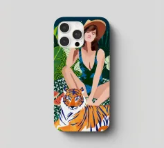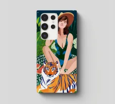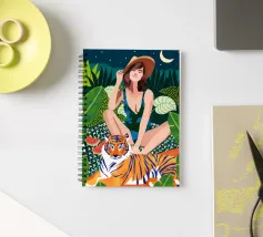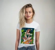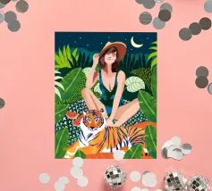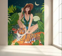 safari Living In The Jungle donna bohemien boho eclettico fauna selvatica natura foresta animali gatto selvaggio tigre amici audace costume da bagno moda acquerello lussureggiante botanica picnic anguria luna notte stellata