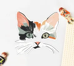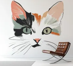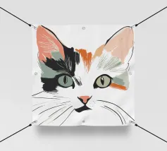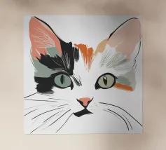 Elegante illustrazione del muso di un gatto intelligente, ideale per la stampa su prodotti come abbigliamento, borse, tazze e altro ancora. Aggiungete raffinatezza e fascino ai vostri articoli con questo grazioso disegno felino!