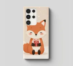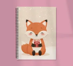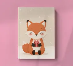 Una dolce e felice Voxy siede nella soffice neve che cade, tenendo in mano un piccolo regalo rosso legato con un fiocco festoso. Il morbido sfondo pastello e l'espressione serena ne fanno un'illustrazione invernale che scalda il cuore, adatta a decorazioni stagionali e spazi per bambini.