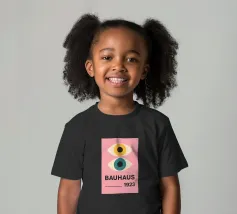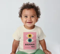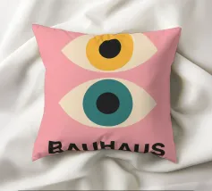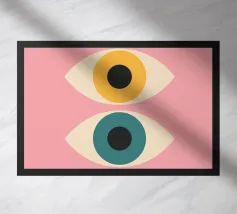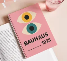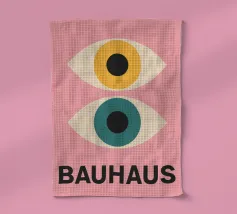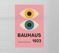 Vedere, capire, progettare: questo poster riassume visivamente la filosofia del Bauhaus. Due occhi astratti in giallo e petrolio su sfondo rosa simboleggiano la percezione e la chiarezza. La tipografia minimalista e il layout chiaro rendono omaggio al movimento Bauhaus del 1923: perfetto per gli spazi moderni, gli amanti del design e i luoghi di lavoro creativi.