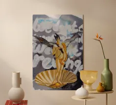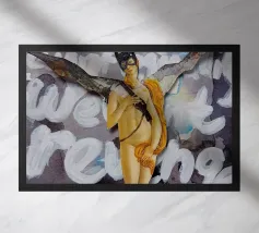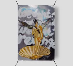 Ciao, sono Dorothée. Sono un'artista di Berlino. Utilizzo materiali di uso quotidiano per riassemblarli sotto diverse angolazioni. Mi piace anche lavorare con la sovrapittura di stampe d'arte (principalmente opere della storia dell'arte occidentale, ma anche immagini di riviste e cartoline). Sovradipingendo la stampa d'arte, la visione dell'immagine cambia e l'immagine cambia il suo messaggio. Sono soprattutto le immagini che servono allo sguardo maschile a essere sovrapitturate dall'artista. Così, le donne per lo più nude e indifese delle stampe si trasformano in guerrieri e supereroi. Le maschere e gli attributi che conferisco loro oscillano tra Catwoman e Pussy Riot. Un tema centrale del mio lavoro è l'esame critico della bellezza standardizzata e la messa in discussione delle abitudini visive tradizionali. La fisicità e la femminilità giocano un ruolo importante nelle mie opere, così come le esperienze quotidiane, le conversazioni e una certa comicità. Spero che vi divertiate con le mie opere, che troviate qualcosa che vi piaccia e che vi diverta a lavorarci quanto me!