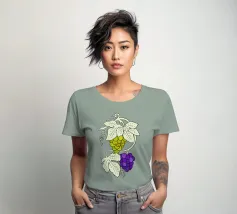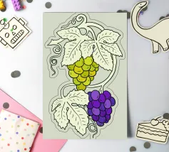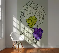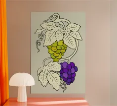 Illustrazione di uva bianca e nera con foglie chiare per gli amanti della frutta e del vino.