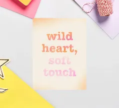 "Cuore selvaggio, tocco morbido": una tipografia potente che unisce forza e dolcezza. Questo design è la dichiarazione perfetta per chiunque voglia abbracciare il proprio lato selvaggio con un tocco di morbidezza. Ideale per camere da letto, soggiorni o spazi creativi: un richiamo visivo che ispira e motiva.