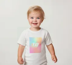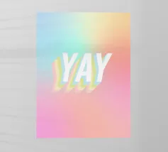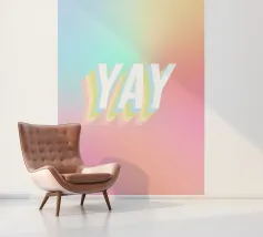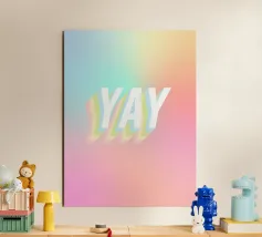Un'opera d'arte gioiosa ed esaltante, caratterizzata da un audace YAY in un moderno font sans-serif, impreziosito da vibranti ombre arcobaleno 3D. Su un sognante sfondo sfumato in azzurro acqua, rosa pesca e giallo sole, questo disegno irradia positività e pura felicità. Perfetto per le ragazze, i sognatori e coloro che abbracciano la magia dello stile di vita degli unicorni, è una celebrazione giocosa dell'ottimismo e delle buone vibrazioni.