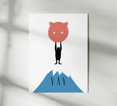 YAY - Gatto potente Un gatto potente che solleva il sole sulla cima della montagna.