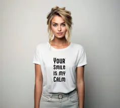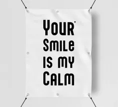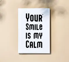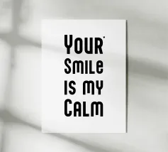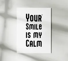 Il tuo sorriso è la mia calma. Espressione d'amore e di San Valentino. Tipografia in nero e bianco (trasparente). È possibile cambiare il colore dello sfondo. Poster tipografico minimalista.