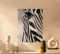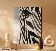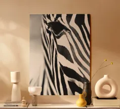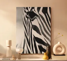 Questo ipnotico primo piano di zebra in elegante bianco e nero porta la bellezza e la grazia della natura in casa vostra in modo moderno. Le strisce dettagliate e la combinazione di colori monocromatici creano un'opera d'arte senza tempo, perfetta per qualsiasi interno. Questo disegno è ideale per gli amanti delle decorazioni minimaliste ed eleganti che cercano un tocco di natura selvaggia. Su tele, tazze, cover per cellulari o cuscini, questo disegno si fa notare. Un pezzo di savana africana e di fauna selvatica per le vostre quattro pareti.