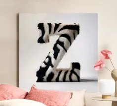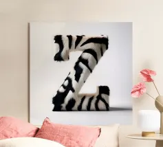 Questa lettera "Z", sorprendente e accattivante, è un'opera d'arte che aggiungerà un tocco di selvaticità a qualsiasi spazio. La lettera è resa in una realistica stampa zebrata, con le strisce bianche e nere che creano un motivo dinamico ed energico. La superficie morbida e strutturata della lettera le conferisce una qualità tattile che invita a toccarla. Questo pezzo sarà sicuramente un argomento di conversazione e un'aggiunta unica a qualsiasi collezione.