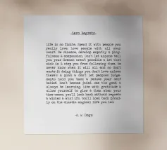 Zero Regrets - A. W. Doys Quote Inspiring Minimalist Typographical black and white typewriter quote