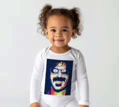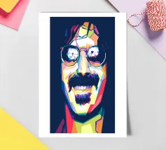 Una rappresentazione WPAP (Wedha's Pop Art Portrait) di Unle Frank cattura il suo spirito eccentrico e ribelle attraverso forme geometriche audaci e colori vibranti e contrastanti. Conosciuto per la sua musica d'avanguardia e per i suoi taglienti commenti sociali, i tratti iconici di Uncle Frank - come i capelli selvaggi, i baffi folti e lo sguardo intenso - sono stilizzati in questa moderna forma di pop art, evidenziando la sua identità di innovatore senza paura e di icona culturale.