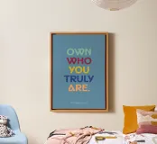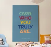 Scopri questa vivace canvas d’arte che celebra l’autenticità con la frase ‘Own who you truly are’. Perfetta per aggiungere un tocco di motivazione al tuo spazio lavorativo o per incoraggiare gli amici. Realizzata con materiali di alta qualità, questa opera d’arte moderna arricchirà ogni ambiente.