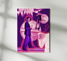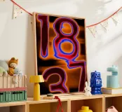 Questo intenso poster fonde estetica glitch, tipografia infuocata e una palette di colori vibranti. I numeri, distorti e aureolati in rosso, arancione, blu elettrico e nero profondo, sembrano fluttuare in uno spazio astratto e saturo di calore visivo.