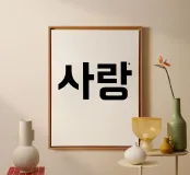 사랑, amore in coreano. Tipografia in nero e bianco (trasparente). È possibile cambiare il colore dello sfondo. Poster tipografico minimalista.