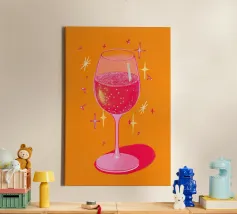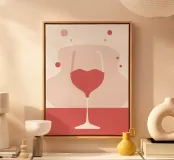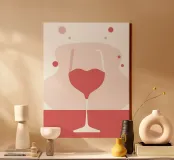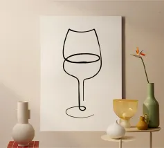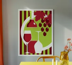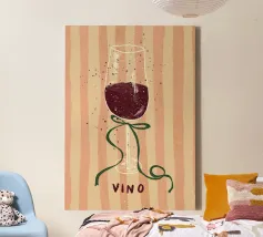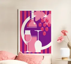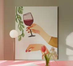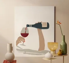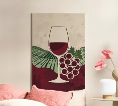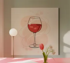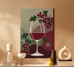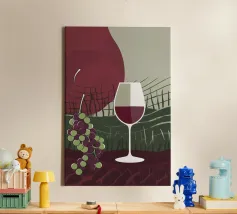 "A Sip of Reflection" è un sottile tributo alla semplicità e alla bellezza delle cose semplici. Toni pacati e linee moderne si uniscono per creare un'opera d'arte rilassante e sofisticata. Questo design è ideale per chi cerca un equilibrio tra uno stile minimalista e il gusto per il buon vino. Perfetto per una sala relax o una cucina, invita a rallentare e ad apprezzare i momenti di tranquillità, valorizzando lo spazio con una palette di colori rossi tenui e armoniosi. Un must per gli eleganti amanti del vino.