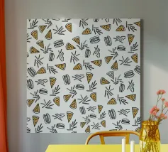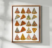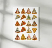 Questo stravagante e colorato motivo alimentare presenta una deliziosa varietà di fette di pizza a fumetti su uno sfondo bianco pulito. Con diversi condimenti come salame piccante, olive, funghi, pomodori e basilico, questa illustrazione è perfetta per l'arte murale della cucina, per il design del menu di una pizzeria o come elemento di un divertente motivo senza cuciture. Ideale per lo scrapbooking digitale, la stampa su tessuto o la creazione di adesivi e decalcomanie giocose, questa grafica vettoriale di alta qualità trasmette un'atmosfera allegra e appetitosa. Cercate questa simpatica illustrazione di pizza per aggiungere un tocco vivace e ispirato alla gastronomia ai vostri progetti commerciali o personali.