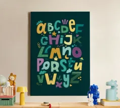 Questa stampa canvas decorativa ABC è perfetta per aggiungere un tocco di colore e apprendimento alla cameretta dei bambini. Con un design giocoso e vivace, rende l'ambiente stimolante e educativo!