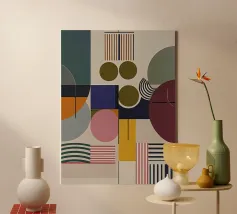The painting captures the constant dance between order and disorder, the eternal struggle between free expression and structural limitation. It invites the viewer to lose themselves in the flowing movements of the lines and to find refuge in the tranquillity of the geometric forms.