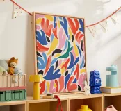 Questo disegno astratto meravigliosamente ottimista, ispirato al vecchio maestro della leggerezza Henri Matisse, può essere appeso alla parete o stampato su asciugamani da bagno o teli da mare, dove si adatta perfettamente. Magari personalizzandolo? Allora il regalo è perfetto.