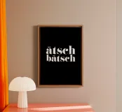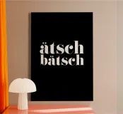 ätsch bätsch, nero, bianco, tipografia, citazione, detto, divertente, ufficio, camera dei bambini, soggiorno, camera da letto, cucina, retrò