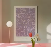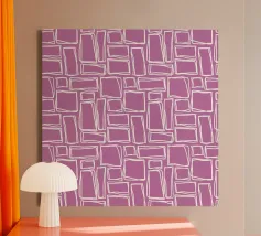 Motivo artistico astratto con sfondo lavanda e linee bianche stravaganti e labirintiche che ricordano un codice segreto. Questo disegno unico e creativo è perfetto per essere utilizzato in vari progetti grafici, tra cui sfondi di siti web, copertine di libri o disegni tessili, e piacerà a chiunque sia alla ricerca di motivi intricati e stimolanti.