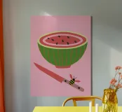 Un fresco mix di anguria succosa e api indaffarate! Questo disegno mostra la bellezza di una succosa anguria e delle api che le ronzano intorno.