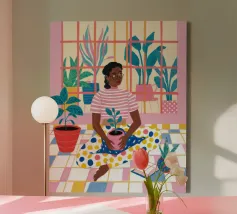 Laura Page dipinge scene quotidiane di perfetta tranquillità, dove i nostri rituali e le nostre routine diventano momenti di piacere estetico. Il suo ampio corpus di opere illustrative è dipinto a mano con guazzo e pastelli a olio tradizionali e, pur ispirandosi a elementi come i viaggi e la natura, emana una familiarità casalinga - il comfort a un nuovo livello.