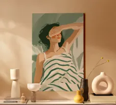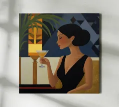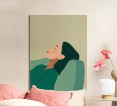 Un ritratto composto che cattura un momento di pausa e di concentrazione interiore. La postura rilassata e gli occhi chiusi suggeriscono qualcosa di delicatamente trattenuto - un pensiero, un sentimento, un respiro. Con texture morbide e una tavolozza tenue, l'immagine trasmette la calma come presenza piuttosto che come assenza, offrendo un tranquillo senso di equilibrio e facilità.